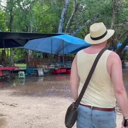 Es hat fürchterlich geregnet. Überall Pfützen, einmal drin und Füße nass, stören die anderen nicht mehr. Es ist so schwül, da stören nasse Socken garnicht 🤭