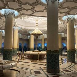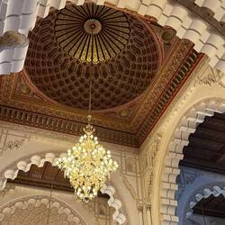 We drove through the neighborhood of Anfa, (or “the hill”) the original name of the city when it was founded in the 7th century. By the time of the European explorations of Africa’s west coast, Anfa had become a haven for troublesome pirates, so the Portuguese blasted the city into ruins in 1468. The town was rebuilt between 1756 and 1790 by Sultan Mohammaed ben Abdallah, an ally of George Washington. The city was renamed Casa Branca, Portuguese for “White House.” It began to grow rapidly as a port and a supplier of wool and tea for the British. Later Spanish overlords changed the pronunciation to “Casablanca” without changing its meaning. The oldest part of town is the neighborhood of Medina. We admired its charming suq and its labyrinthine streets and alleys. It really does look like some of the depictions of ancient Arab towns in the movies of my childhood. This part of the city seems untouched since the eighteenth century and bears its own distinctive charm.
