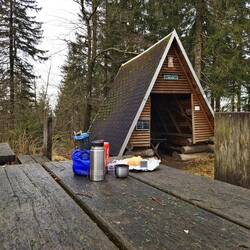 Ab hier hieß es erst mal Seele baumeln lassen und Natur mit Ausblick tanken. Vorbei an der Tanzbuche bot sich kurz darauf die Schutzhütte "Am Kreuz" für meinen Mittagsmampf selbstredend an. Irgendwie komme ich auf meinen Rennsteig-Touren immer wieder zur passenden Zeit dort vorbei um ein Päuschen zu machen und das sollte diesmal natürlich auch so sein.
