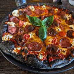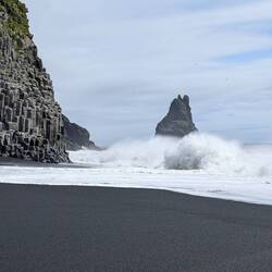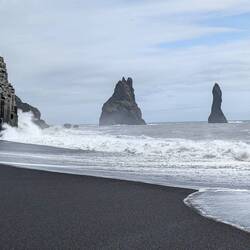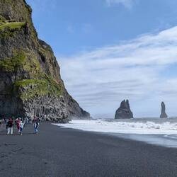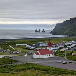 Rundgang zu Kirche und zum Black Beach, als Belohnung Pizza