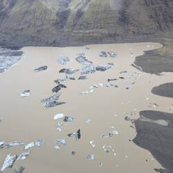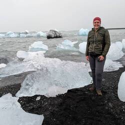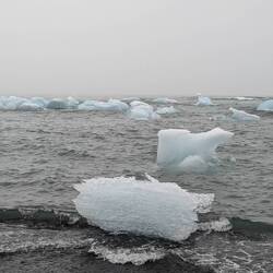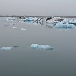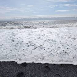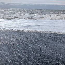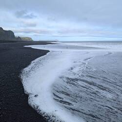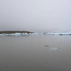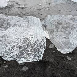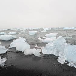Aus der Gletscherlagune werden dicke Eisbrocken ins Meer gespült und dann wieder an den Strand getrieben
