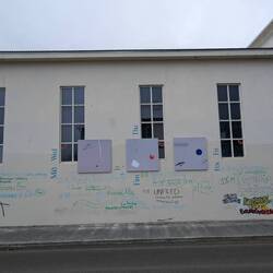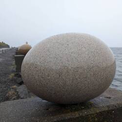 Hier sind heimische Vogeleier in Granit nachgebildet. Leider in wenig ansprechender Umgebung.