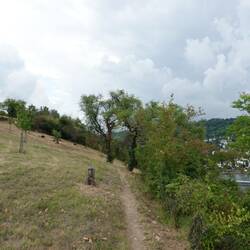 Ziemlich unspektakulär ist der Rheinsteig hier plötzlich einfach zu Ende. Kein Schild, keine Plakette, nix. Die Markierungen hören einfach auf. 🤷♀️