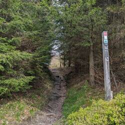 Im weiteren Verlauf breite Forstwege und abgeholzter Wald.