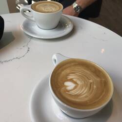da wir uns heute sonst in seattle von keinen größeren kostenfallen haben locken lassen (haben sogar mit dem parkplatz ein schnäppchen gemacht, der erste parkplatz auf dem wir waren sollte uns $48,00 kosten, haben am ende für $6,72 geparkt....immer auf der suche nach etwas billigerem, man kennt es) haben wir uns dann noch abends zwei cappuccino und ein extrem leckeres nicht ganz definierbares aber dick mit käse überbackenes etwas aufs zimmer bestellt. denn ein für sein junges alter viel zu weiser mann sagte einst: „niemals oder, immer auch!“