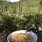jetzt können wir jedenfalls am see mit einem kleinen privatstrand und in einem schön abgegrenzten separee (siehe video) den abend genießen. eventuell bleiben wir morgen einfach hier und gehen im wald wandern oder so, der weg war echt hart und für paar stunden schlaf wäre das irgendwie kein gerechter deal, wenn ihr wisst was ich meine.