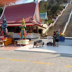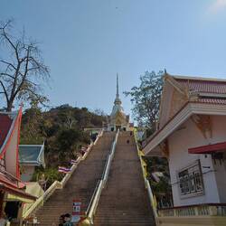 Heute sind wir man nicht zum Strand gefahren. Stattdessen sind wir zum Tempel Wat Khao Takiap gefahren.