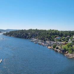 Unser letzter Morgen in Norwegen. Bei schönstem Wetter und 23 Grad erkunden wir noch unsere Schlafgegend am See. Die Hunde trinken gefühlt den ganzen See leer und Basima nutzt sogar die Gelegenheit zum Schwimmen. Im Wald entdecken wir einen Survivalunterschlupf. Es macht Spaß den Wald zu erkunden aber die Zeit drängt. Wir verlassen Norwegen natürlich nicht ohne noch mal bei Rema1000 uns mit Shrimps und Garnelen und Käse einzudecken. Auch einen Weinladen besuchen wir noch und nehmen Cidre und Met mit. Übrigens ist der Rema1000 viel günstiger als der Extra. Ein letztes Ziel wollen wir noch besuchen. Vor 8 Jahren waren wir das erste Mal in Norwegen und haben die letzten drei Tage auf einem Platz im Ytre Hvaler National Park verbracht. Wir haben damals mit norwegischen Krabbenfischern, auf Einladung dieser, in einem Schuppen zusammen gefeiert. Wodka aus Tertrapacks und Lilie Marleen auf dem Schifferklavier. Die Walharpune die sie damals mitten in der Nacht über den Hafen gefeuert haben, werden wir nie wieder vergessen. Der Weg zu diesem Ort, nahe Fredrikstadt, enttäuscht uns erst. Der Tante Emma Laden von damals ist nun ein Supermarkt und es wurde viel gebaut. Aber dann auf einmal sehen wir diesen kleinen Platz direkt am Meer und er sieht noch genauso aus wie damals. Der Schuppen ist gleich geblieben, selbst die Einrichtung hat sich nicht verändert, wie uns ein Blick durch das Fenster zeigt. Leider ist der Fischer nicht da aber dafür alle Erinnerungen. Mit Wehmut fahren wir weiter und überfahren bald die Grenze nach Schweden. Bis bald Norwegen, wir kommen definitiv wieder. Danke für die schöne Zeit.