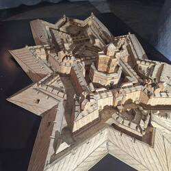 Small walled city with a unique castle that was used more as a hunting cabin than for defense.