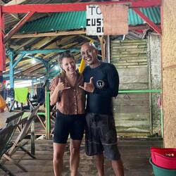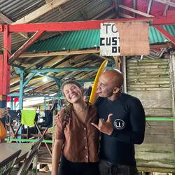 Heute haben wir es geschafft zusammen zu surfen und mein toller Lehrer Bowl hat noch auf ein Foto gewarter☺️