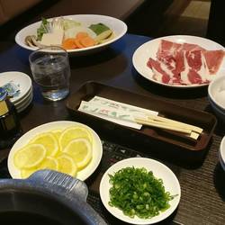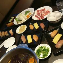 Bouillon (wij hadden citroen en iets japans) en daar moest je alles kort in koken. Ook was er sushi. Alles onbeperkt =) we konden bestellen via het scherm ^^