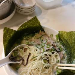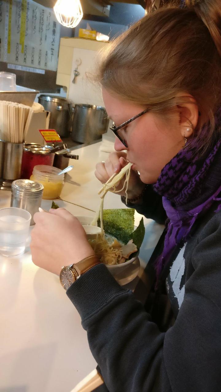 Met gratis noodle refill! Je kon het zelf nog pittig maken en sesamzaad, knoflook en saus toevoegen =)