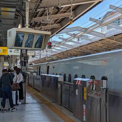 Uuuuund fahren heute das erste Mal mit dem Shinkansen🚅. Man sitzt richtig komfortabel, bemerkt die Geschwindigkeit kaum. Der Zug lehnt sich sogar in dieLæs mere