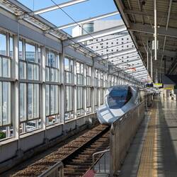 Mit dem Shinkansen geht es nach Hiroshima. Am Bahnhof erschallt ein lautes futuristisches Trällern, bevor der Schnellzug einfährt. Gewöhnungsbedürftig. 🧐😂