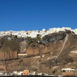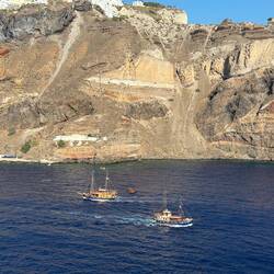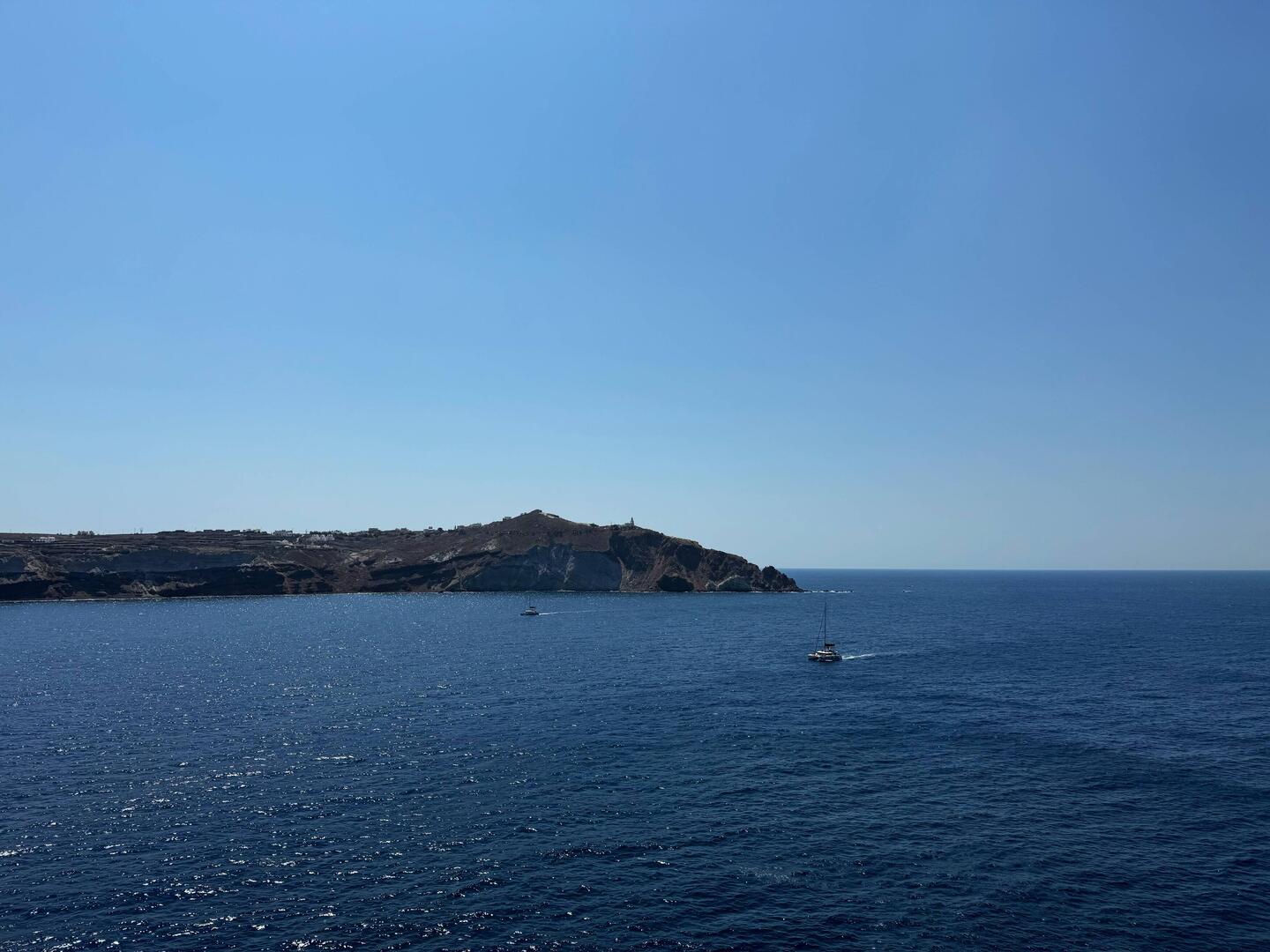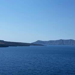 Als wir aus dem Spa kamen war Land in Sicht: Wir hatten den ersten Hafen bzw. den ersten Ankerpunkt erreicht und waren vor Santorini angekommen.