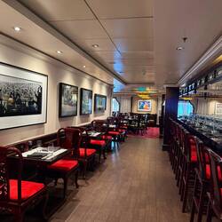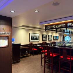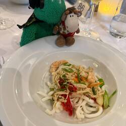 Den Abend des ersten Tages läuteten wir mit einem Glas Prosecco ein. Eine Runde ums Schiff in der Abendsonne und dann ging es lecker asiatisch Essen: