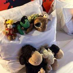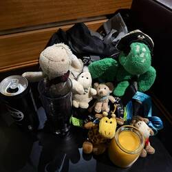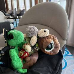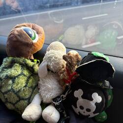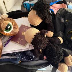 In wenigen Stunden fährt das Taxi vor und wir starten in Richtung Flughafen. So hoffen wir das zumindest, weil die Mensch hat ja nicht mal angefangen zu packen. Alles was bisher im Koffer sitzt, sind wir. Wir wären also die Mitreisenden Plüschies: Nicky, Betty, Sealias, Mini-Hannes, Jollita und ich.