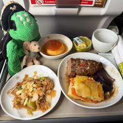 Die in der Kabine gebliebenen Mitreisenden bekamen solange vom Stewart ein paar Erdbeeren in Schokolade geliefert. Unser Stewart ist sehr nett und sorgt fantastisch für uns.