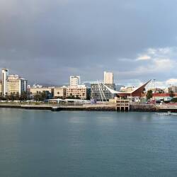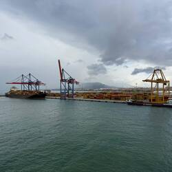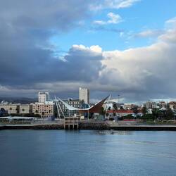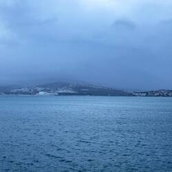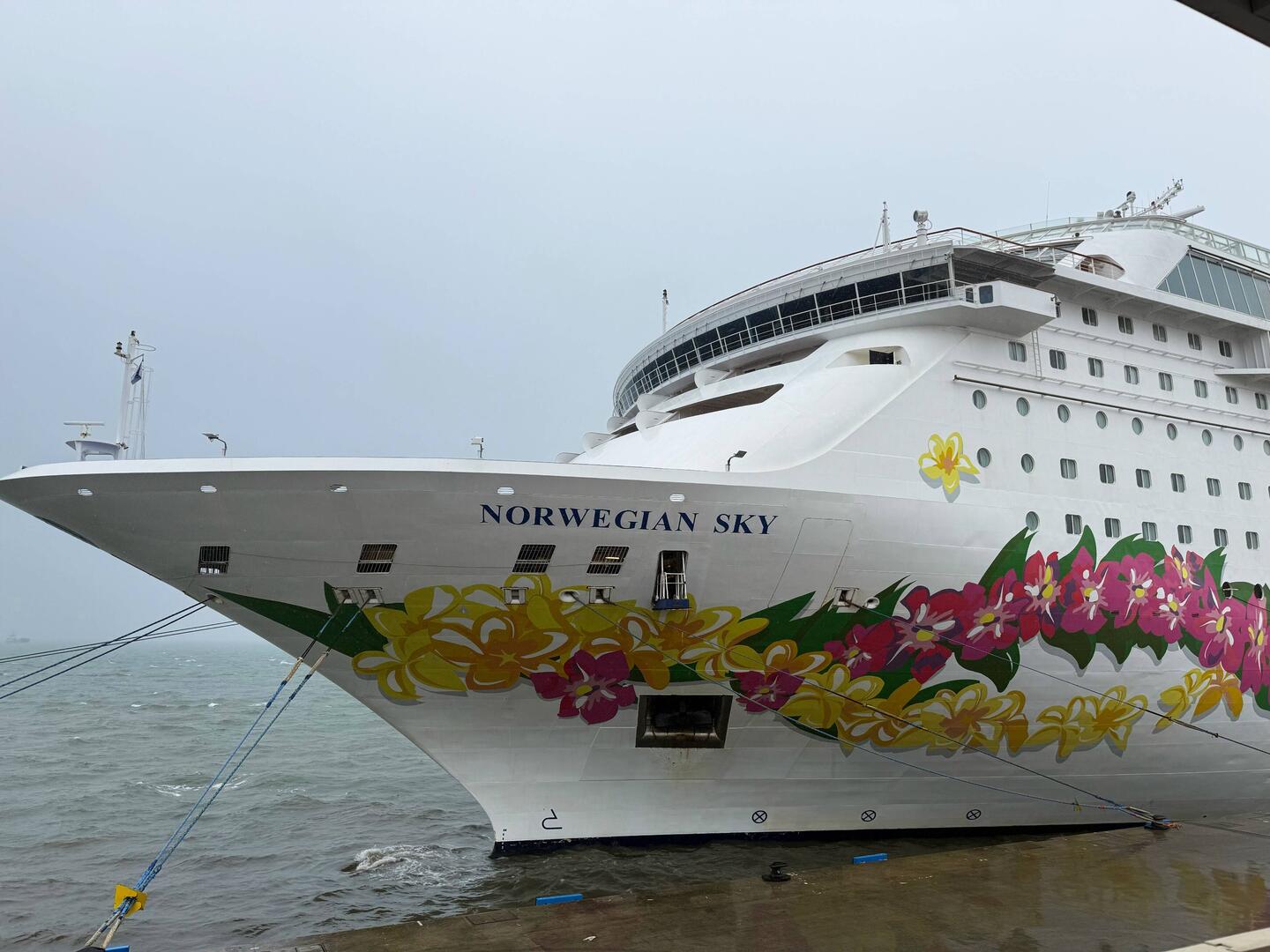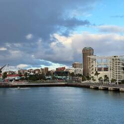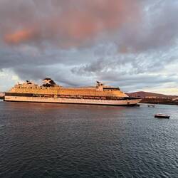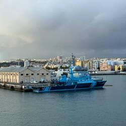 Da unser Ausflug erst gegen Mittag startet, umrundeten wir während des Einparkens das Schiff.