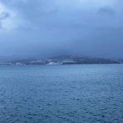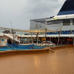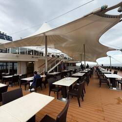 Zum Lunch waren wir im Great Outdoors, welches ruf diesem Schiff tatsächlich den Namen verdient. Dort konnte man auch ein wenig Aussicht genießen – so gut das halt bei diesem Wetter geht.