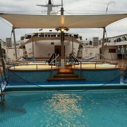 Nachdem wir uns mit einem leichten Lunch gestärkt hatten, drehten wir noch ein paar Runden über das Schiff und nahmen wieder an der progressive Trivia teil.