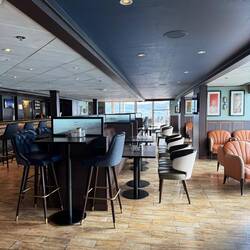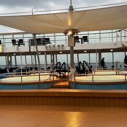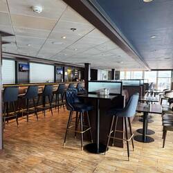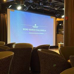 Dann waren wir doch noch draußen, weil wir übers Pooldeck gehen mussten, um zur Bar zu kommen. Dort haben wir uns einen Energy Drink geholt und sitzen nun in der Bliss Lounge für die Word Search Challenge und die Morning Trivia im Anschluss.