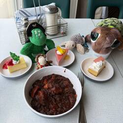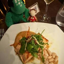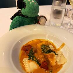 Es gab wieder traditionell die Lobster Ravioli, gegrilltes Huhn und Cheesecake.