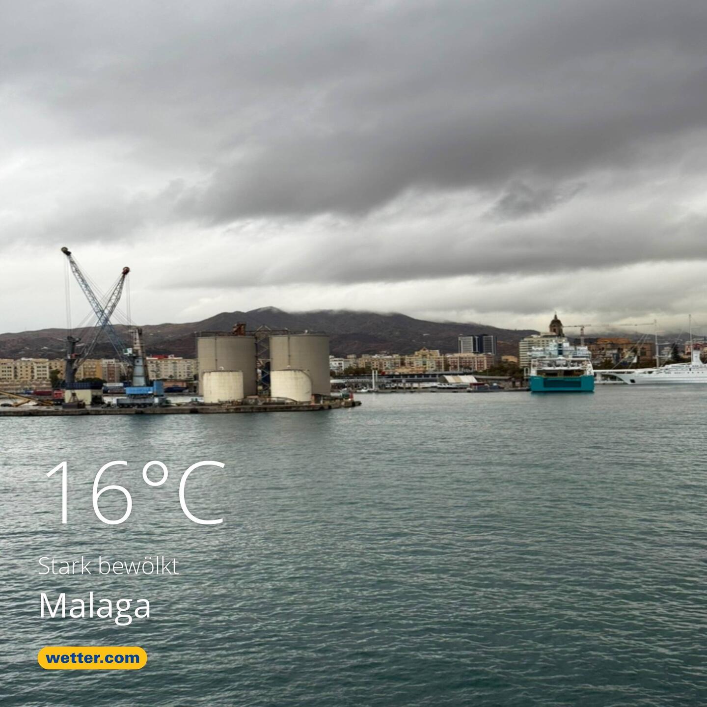 Heute wachten wir in Málaga auf. Málaga liegt an der Costa del Sol. Nur merkt man davon nicht viel, weil es auf unserem morgendlichen SchiffsRundgang eher nach heftigem Regen als nach Sonne aussieht.