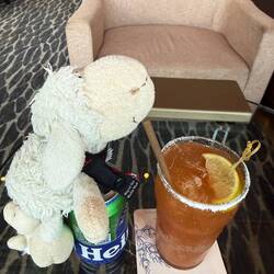Später stärkten wir uns mit einem alkoholfreien Chardonnay und dem hauseigenen Energy Drink, um uns ein wenig im Casino, umzusehen. Natürlich hatte es geschlossen, weil wir im Hafen lagen.