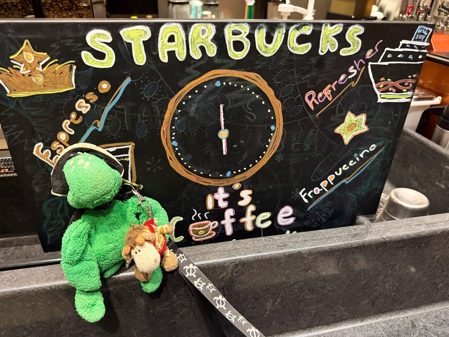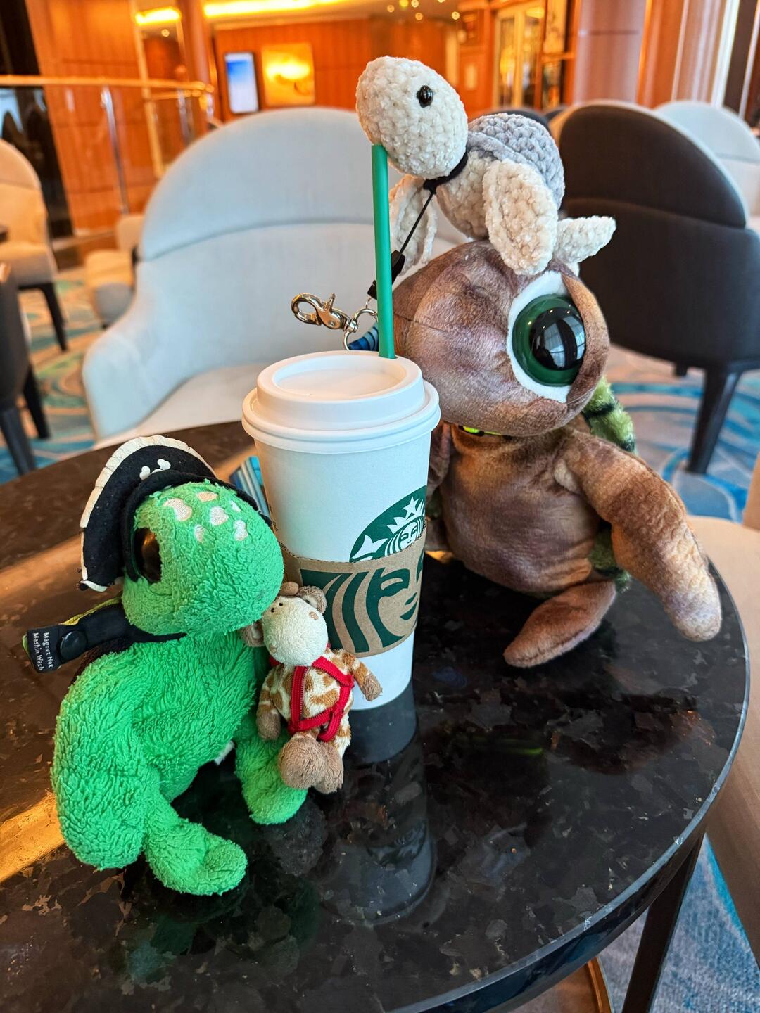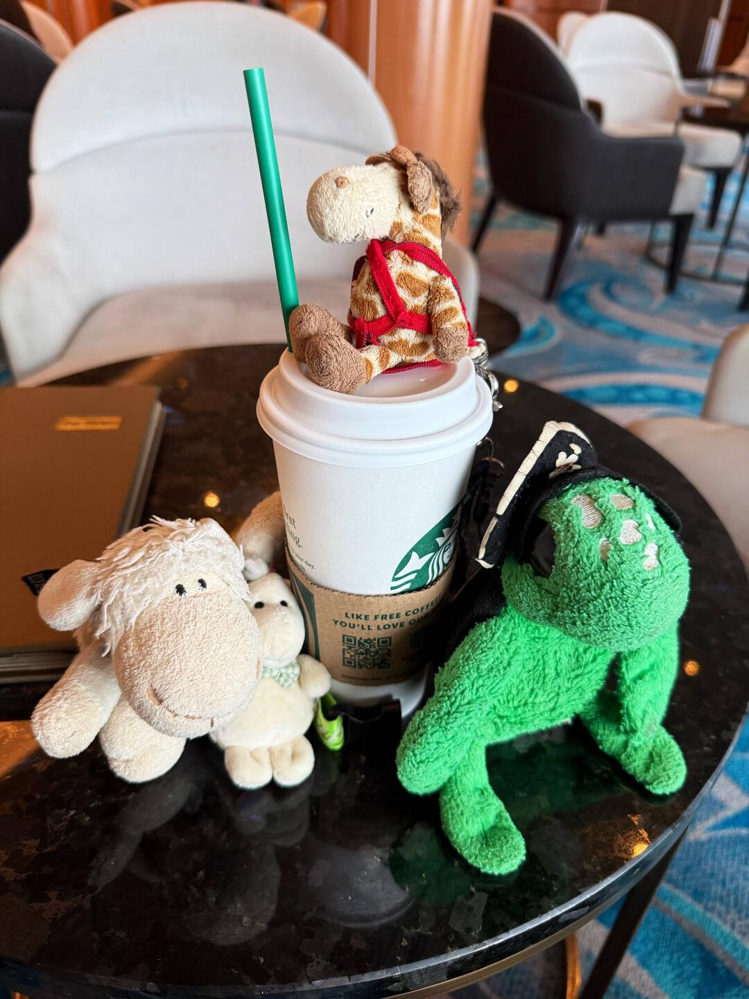 Nach unserer obligatorischen Schiffsrunde haben wir uns wieder unseren Kaffee bei Starbucks geholt und in der Atrium Bar an den Fenstern abgehangen, unseren Kaffee getrunken und Menschen beobachtet.