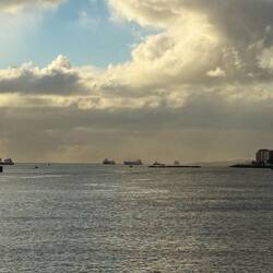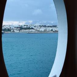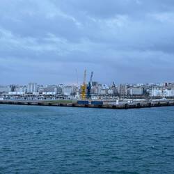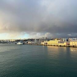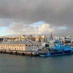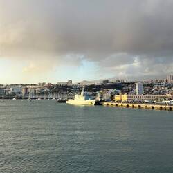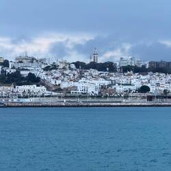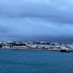 Tanger, das Tor zu Afrika, liegt an der Straße von Gibraltar und ist auch als Tangier bekannt. Hier gingen wir heute Morgen vor Anker und umrundeten auf dem Jogging Track VORM ersten Kaffee das Schiff für Fotos.