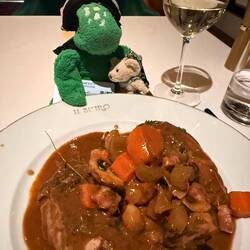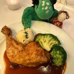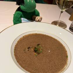 Zum Abendessen hatten wir uns heute einen Tisch im Le Bistro - dem französischen Restaurant - reserviert. Wir starteten mit Soupe Aux Quatre Champignons, hatten dann das obligatorische Coq au Vin und endeten traditionell mit Kahlúa und Marquise au Chocolate 😋