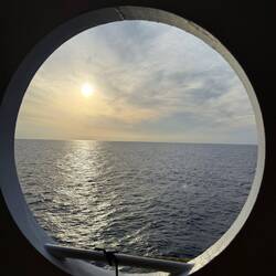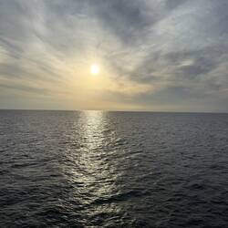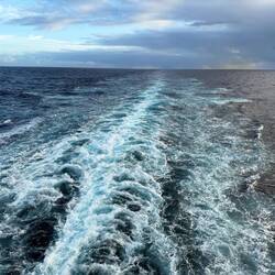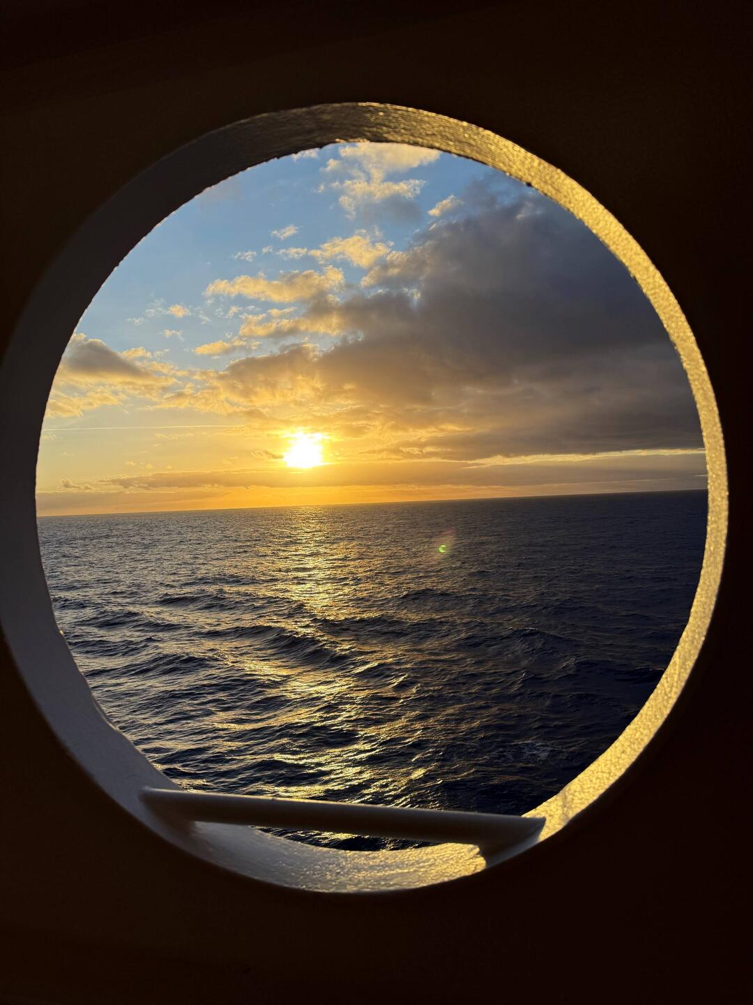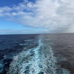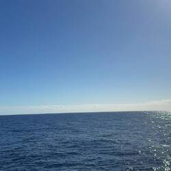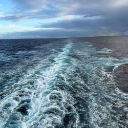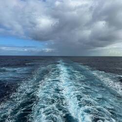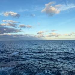 Wir sind auf dem Weg zu den Kanaren und rings um das Schiff ist ausschließlich Ozean. Auf unserer morgendlichen Schiffsrunde konnten wir jedoch fühlen, dass es langsam aber sicher wärmer wird und wir wohl dem Tief entfliehen.