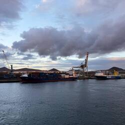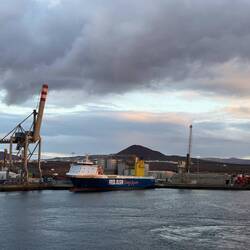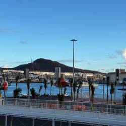 Als wir heute Morgen das Promenadendeck betraten, war das Schiff gerade dabei vor Arrecife auf Lanzarote einzuparken.