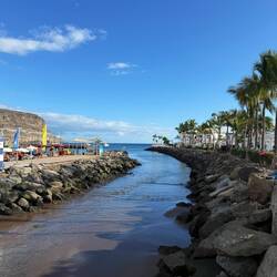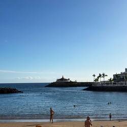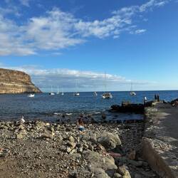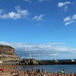 Nach einem kurzen Spaziergang durch den Ort mit seinen Kirchen und schönen Parkanlagen haben wir uns am Strand Playa de Mogán niedergelassen und die Sonne genossen.