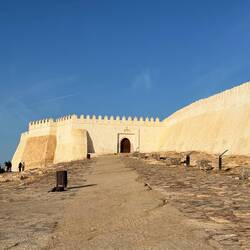 Nach unserem morgendlichen Schiffsrundgang besuchten wir als erstes mit unserem Tourbus die Festungsanlage hoch über der Stadt. Sie wurde 1540 zum Schutz des Hafens erbaut und man hat eine tollen Aussicht. Nachdem die Festungsanlage im Jahr 1752 nach einem Angriff wieder aufgebaut wurde, hat sie ein Erdbeben im Jahr 1960 nahezu vollständig zerstört. Heutzutage sind die Außenmauern wieder rekonstruiert und zu bewundern. Das Innere der Festung ist jedoch leer. Dafür kann man immer noch die Aussicht von oben herunter genießen, Kamele bestaunen und über die Geschichte der Festung, des Erdbebens und der Stadt etwas nachlesen. Als die Mensch einmal nicht hingeguckt hat, haben wir uns eins der Kamele einfach mitgenommen. 😇🐢Read more