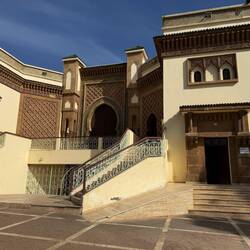 Nach einem kurzen Rundgang über den örtlichen Markt, auf den man Massen an Oliven und Datteln bestaunen konnte – und wir eine Orangen naschen durften –, haben wir uns auf den Weg zur Talborjt Moschee gemacht. Diese konnten wir uns nur von außen ansehen.
