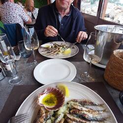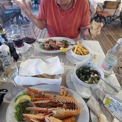 Morgens Gewitter und ab nachmittags sehr sonnig ... Morgen soll es regnen und daher gehen wir heute nach Portoroz ... gute 10 km ... sehen beinahe den Sonnenuntergang und essen wieder sehr gut ...Lue lisää
