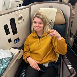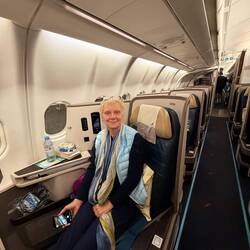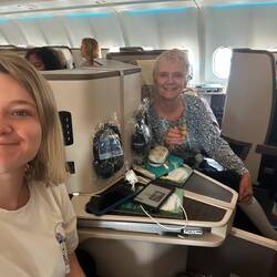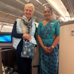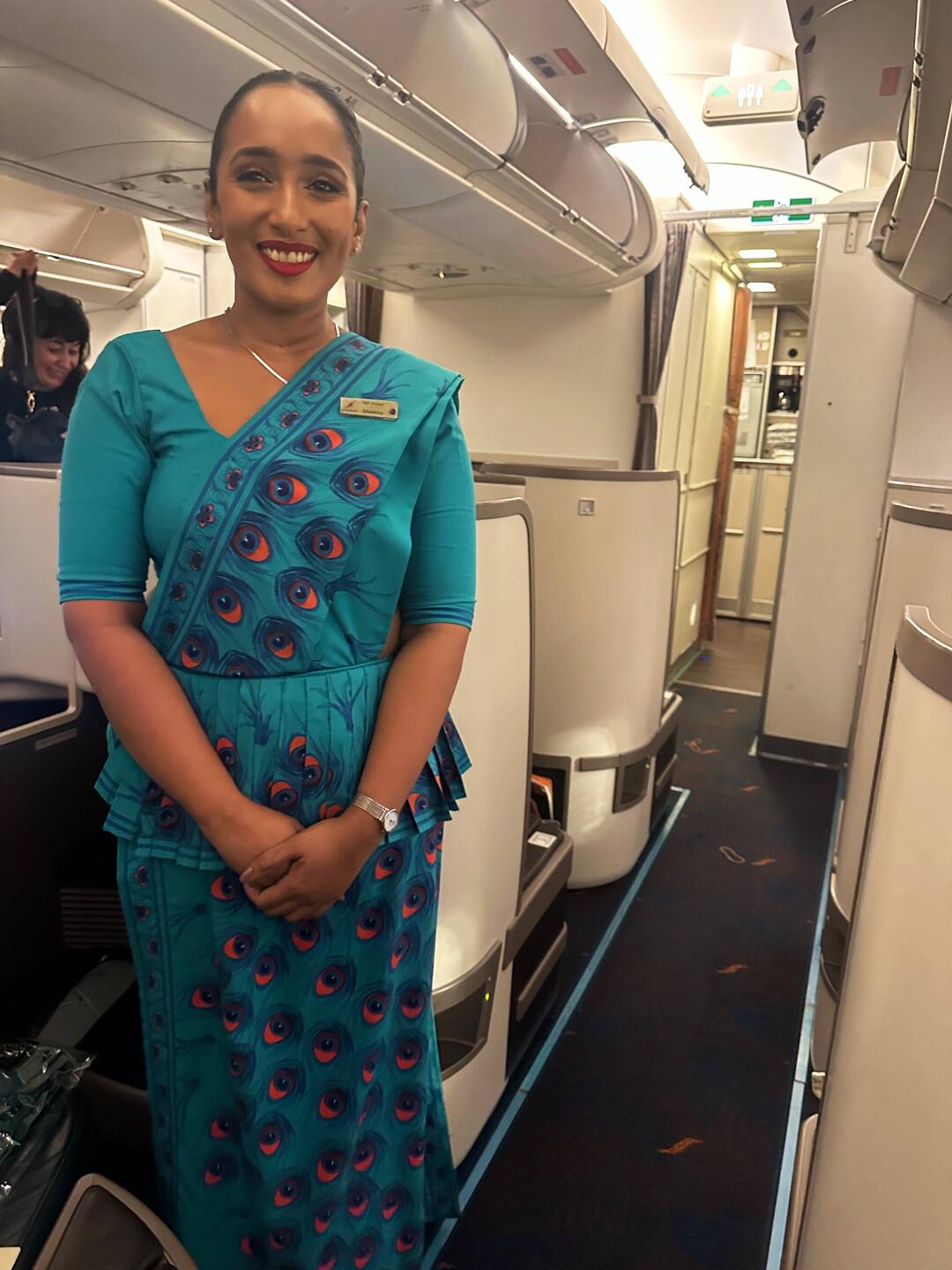 Journey begins , all seems quite comfortable! Air hostess has lovely outfits .