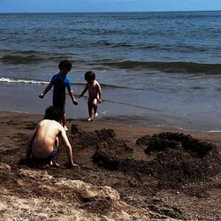 En vez de ir a Buñol, hace día de playa y nos vamos a pegarnos un bañito en plenos mes de abril. Fresquita el agua pero a gusto.