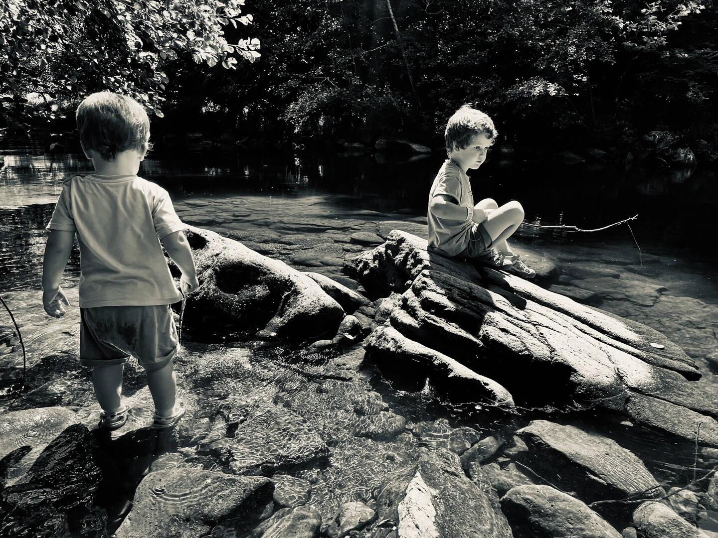 Buscamos río huyendo del calor por el valle de Asón. Pasamos un rato intentando pescar con una caña improvisada.