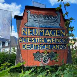 Auch wenn der Ort nicht mit der Fachwerkromantik anderer Moselorte mithalten kann, man ist in Neumagen stolz auf eine über 2000-jährige Weinkultur. Das Römische Weinschiff, ein aus Stein gehauenes Schiff mit Weinfässern, wurde in N-D gefunden. Daher nimmt man an, dass schon die Römer hier Weinbau betrieben haben. Das römische Weinschiff haben die Neumager nachgebaut. Es heißt Stella Noviomagi und lädt zu Fahrten auf der Mosel ein. Ob der lokale Wein schmeckt ob dieser langen Tradition? Wie werden sehen. Weingüter er gibt es hier jedenfalls sehr viele.