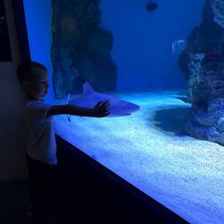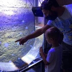 Nakon druženja preko stakla prebacili smo se na plažu družiti se s morskim životinjama i u moru. A da, za uspomenu si je Lovro kupio plišanog morskog psa.