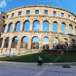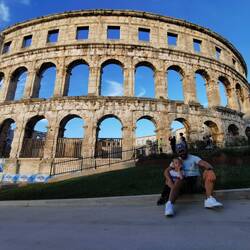 Za kraj smo prošetali do pulske arene - da pokažemo Lovri gdje smo se Žiga i ja upoznali…nije baš bio impresioniran 🤣