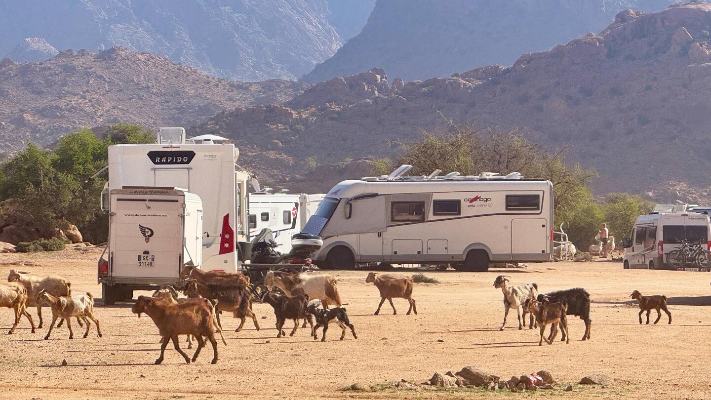 Am Morgen, wir fast täglich, zog die kleine Ziegenherde 🐐🐐 ganz selbstverständlich durch den Stellplatz. Zwischen den Wohnmobilen wirkten sie, als gehörte der Platz eigentlich ihnen. Ein stiller, entschleunigender Moment, der perfekt zu dieser rauen Umgebung passte.
