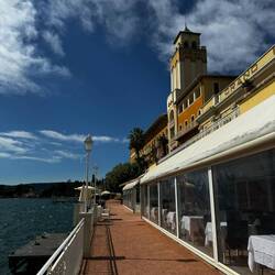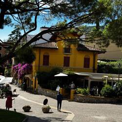 Wir bummelten dann endlich einmal durch den Ort. Ziel war erst einmal der See. Der Torre ist immer wieder schön zum anschauen - nur diesmal blieb uns der Eingang versperrt. Die Villa Alba war belebtOkumaya devam et