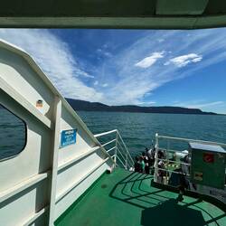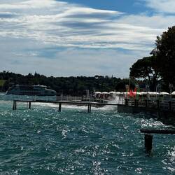 Da wir diesmal mit dem Auto auf die andere Seeseite wollten, mussten wir warten. Erst die dritte Fähre hatte Platz für uns. Aber das ist zeitlich immernoch günstiger, als sich um den See rumzustehen.