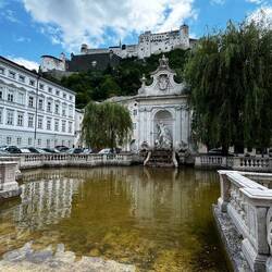 Und wie der Platz besagt, ist das Schloss Mirabell nicht weit. Leider bekomme ich die Schönheit der Bepflanzung einfach nicht auf dem Foto hin.