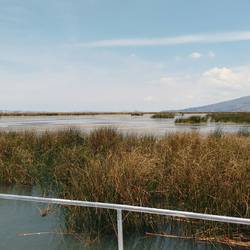 Also hier mal die Fakten: der Titicacasee heißt nicht so weil er mit Busen und Kot voll ist. Sondern in den beiden Indigenen Sprachen hier, Quechua und Aymara, heißt titi Puma und caca grau/Stein. Also heißt der See grauer Puma, denn wenn man den See auf der Karte umdreht, also Norden nach Süden, dann siehts aus wie ein Puma der einen Hasen jagt. Und der See ist der höchste der Welt mit über 3900 Höhenmeter und der größte in Südamerika. Die Tiefe variiert stark zwischen 2 und 250 Metern. Und das ist auch der Grund für die schwimmenden Inseln.