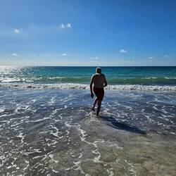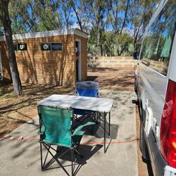Mir si witer nordwärts gfahre. D Fahrt isch eher eitönig gsi. Viel Gstrüpp u süsch nüt. Später hets de no Landwirtschaft gha mit Chüe u Schaf. Jetz si mer uf emne Luxus Campingplatz mit eigetem Badzimmer diräkt näbem Stellplatz. Nach em ichecke si mer a Page Beach und hei ds Meer gnosse. Ou ds Apero hei mer nid ussegla.Læs mere